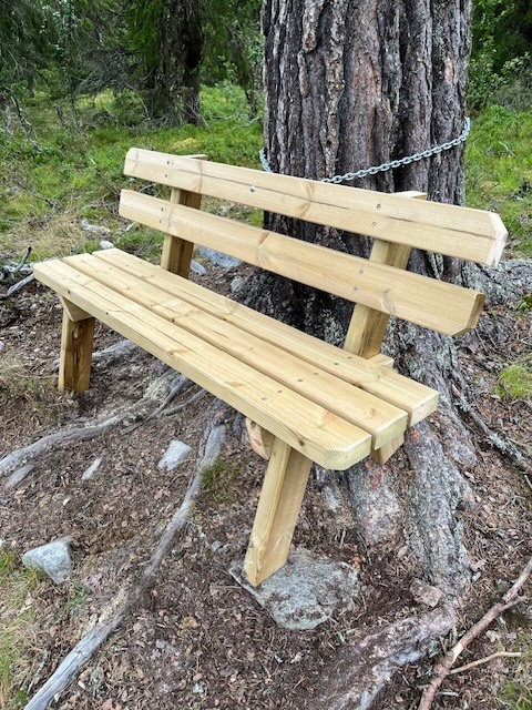 Hvilebenk plassert i Saubuvegen ved Pålgarsfurua